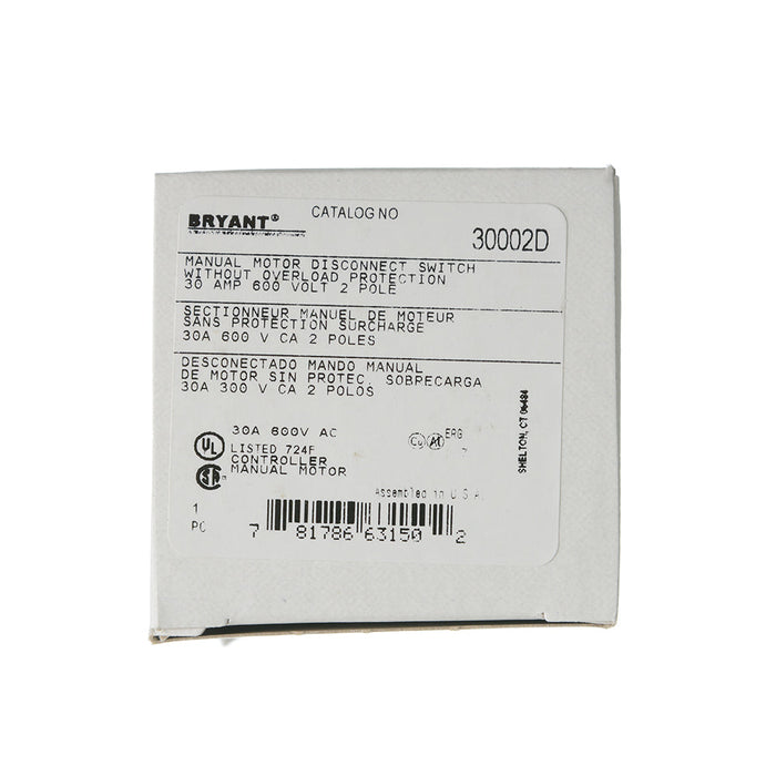 Bryant 30A 600V 2-Pole Disconnect Switch (30002D)