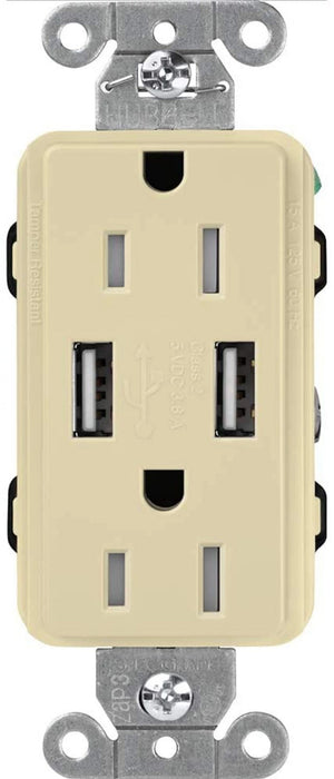 Lutron Claro 15A Receptacle USB Tamper-Resistant Ivory (CAR-15-UBTR-IV)
