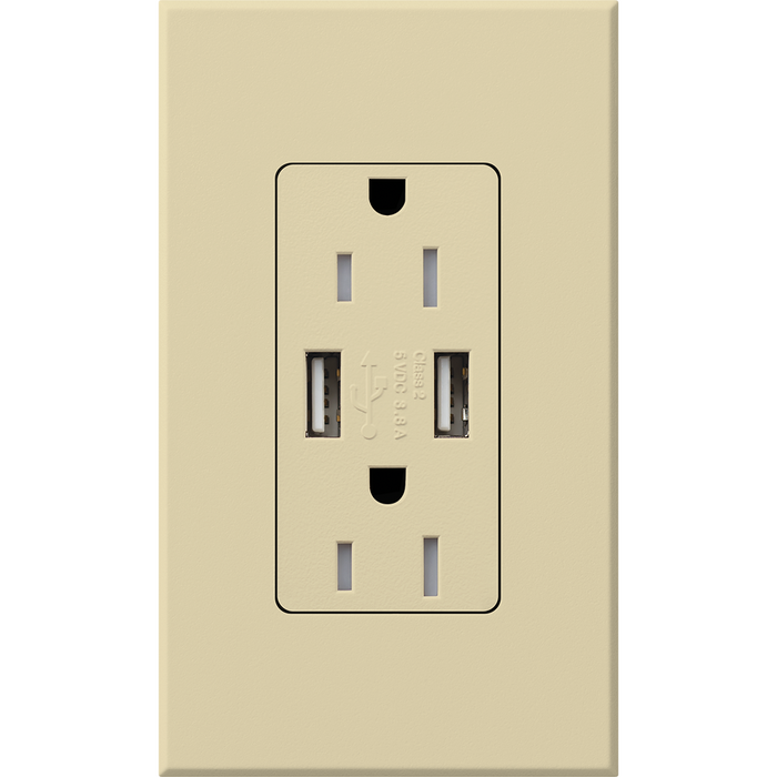 Lutron Architectural 15A Receptacle USB Tamper-Resistant Ivory (NTR-15-UBTR-IV)