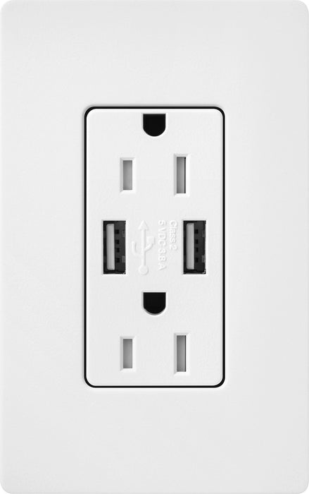 Lutron Satin 15A Receptacle USB Tamper-Resistant Snow (SCR-15-UBTR-SW)