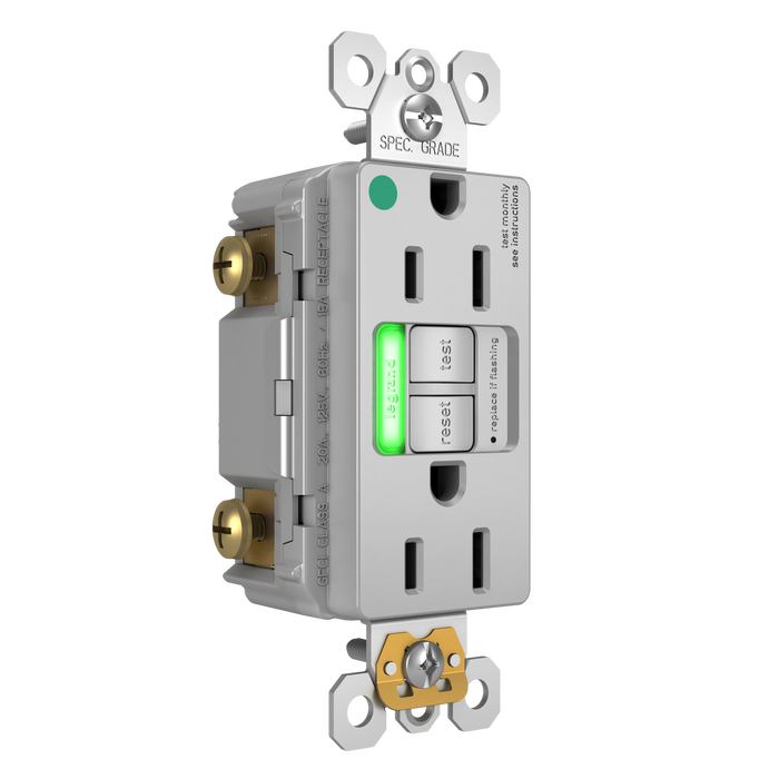 Pass and Seymour GFCI Power-Indicating Hospital-Grade Tamper-Resistant Receptacle 15A Gray Green LED (1597HGTRPIGRY)