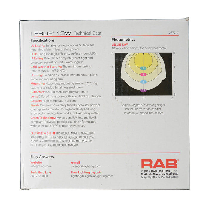 RAB Leslie Bullet Flood 13W LED 120V 3000K 80 CRI White (LES13YW)