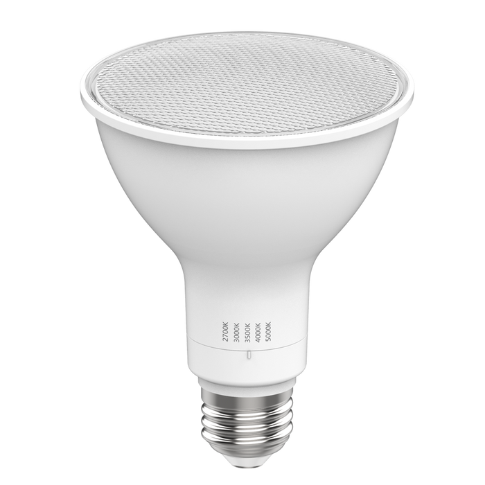 RAB 11W LED PAR30L Lamp E26 Base CCT Selectable 2700K/3000K/3500K/4000K/5000K 40 Degree Beam Angle 90 CRI Frosted (PAR30LFA-11-9CCT-40D-DIM)