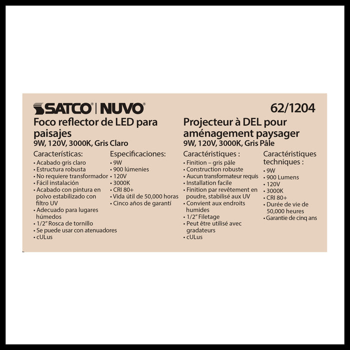SATCO/NUVO LED Landscape Flood 9W Light Gray Finish (62-1204)